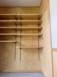 可動式の棚が取り付けられました。 かなりの週能力と収納の奥まで差し込む光で探し物も楽になります☆